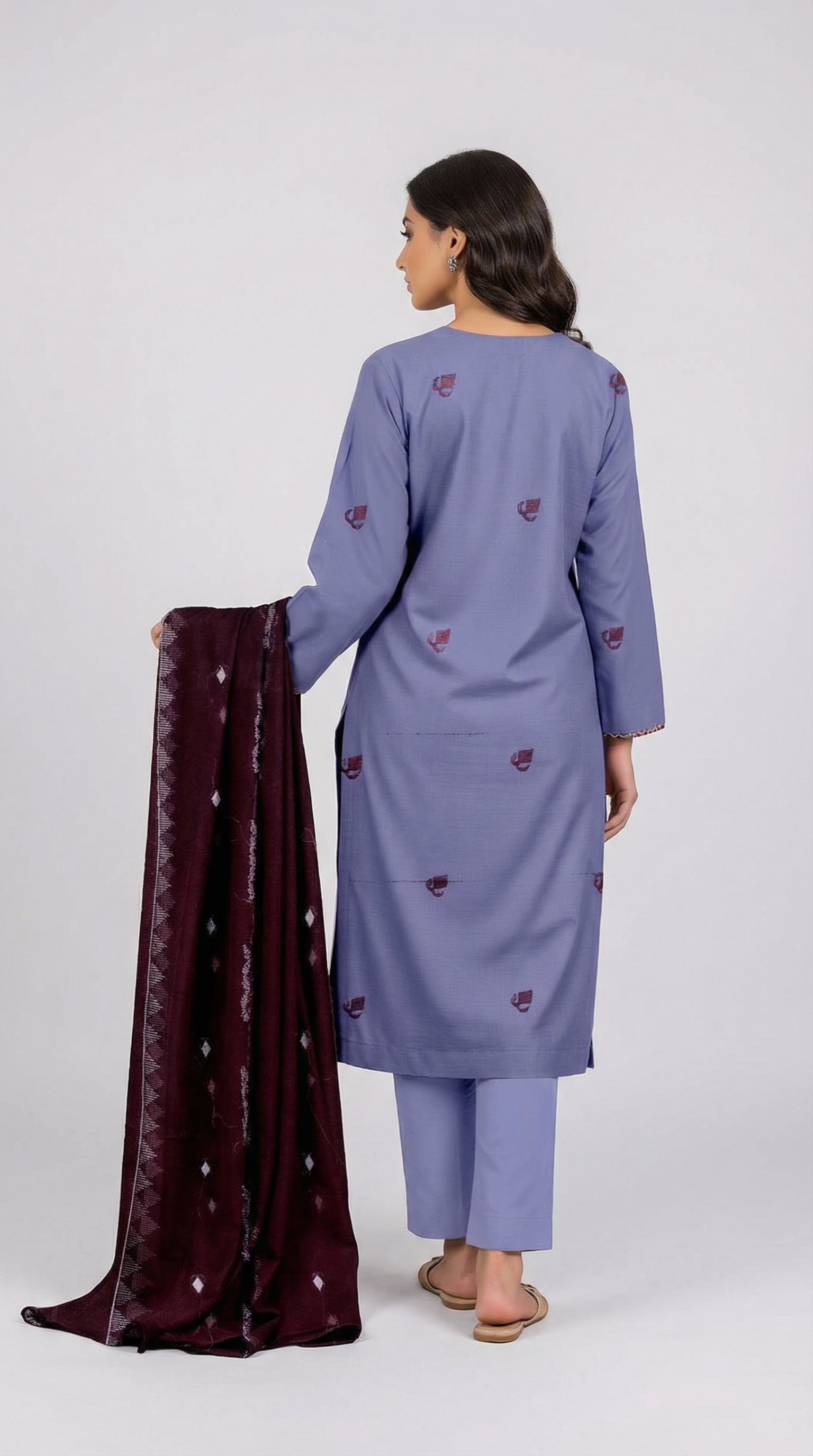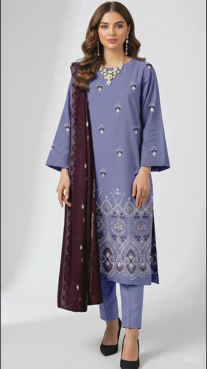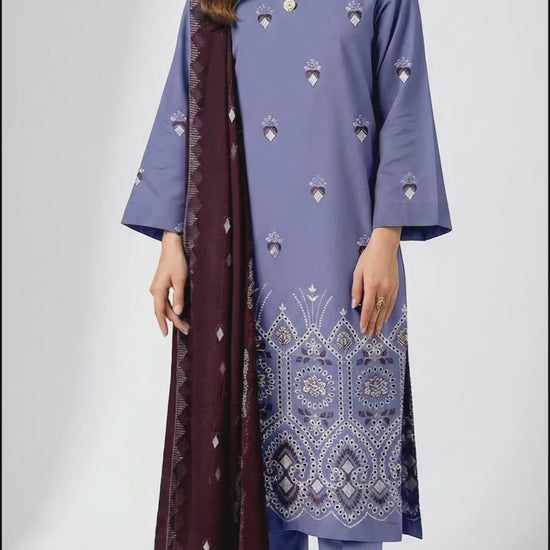 Lawn Bana Dora Fancy Heavy Embroidered With Heavy Embroidered Back and Sleeves And Fancy Jcard Shawl Dyed Trouser BY QISSA